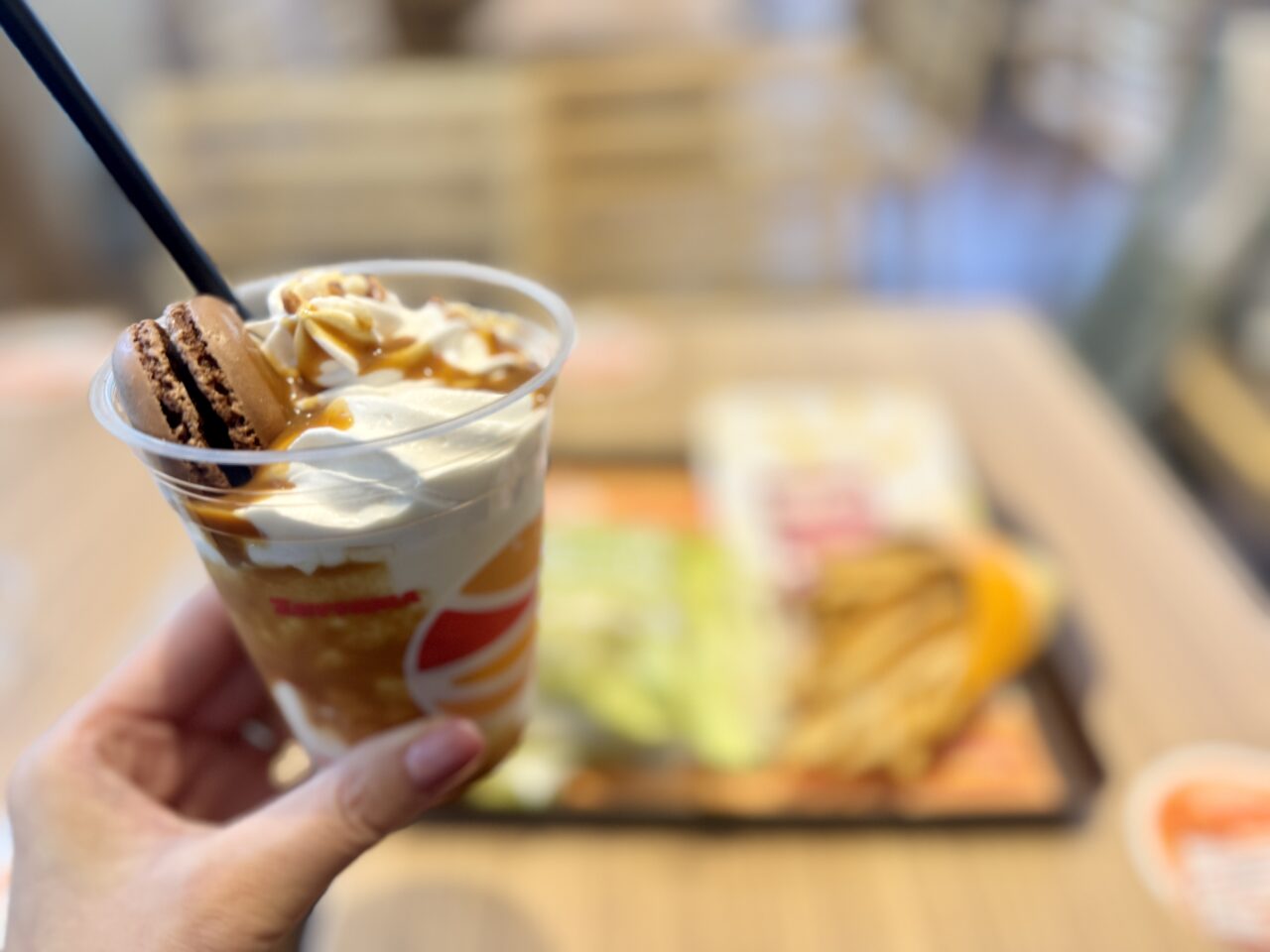 - トッピング: ナッツの食感と濃厚なマカロン、たっぷりの生クリームが加わり、普通のシェーキでは味わえないプチ贅沢なデザートになっています。