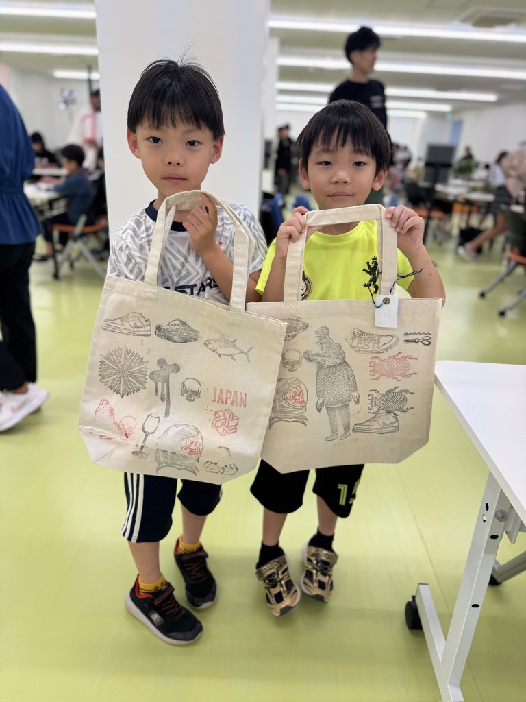 はんこを使って、オリジナルの布バッグを作るワークショップ。参加者は、様々な図柄のはんこを自由に組み合わせて、世界に一つだけのデザインを完成させました。