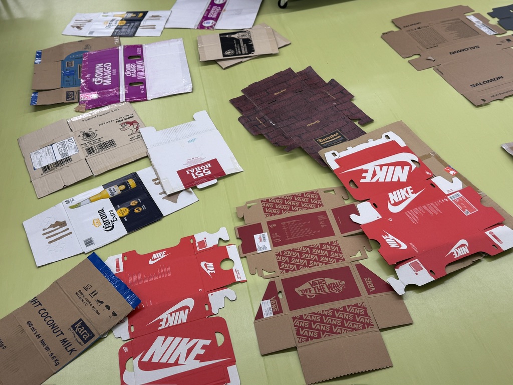 段ボールを使ってお財布を作りました。ちょっとだけ力が必要な部分もありましたが、子どもも大人も挑戦でき、世界にひとつだけのお財布をつくれるワークショップでした!