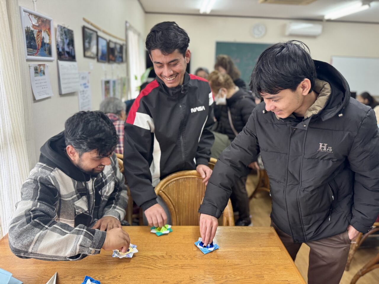 席を並べて座り、30分、40分と途切れることなく、日本語での会話や折り紙で楽しんだり。