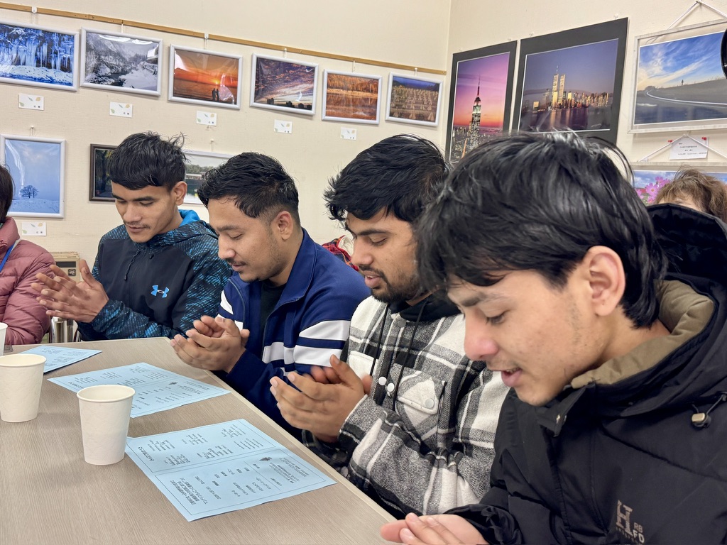 2026年1月20日、村上団地近くの「ほっこり村上」にて、理知の杜日本語学校千葉校の留学生と地域住民の皆さんによる交流会が開かれました!この交流会は日本の歌を歌って交流を深めようと、八千代市福祉協議会村上中央支会が企画し、参加者は3月に卒業を控えた学生17人を含む、総勢50人!和やかな空気と笑顔に包まれました。