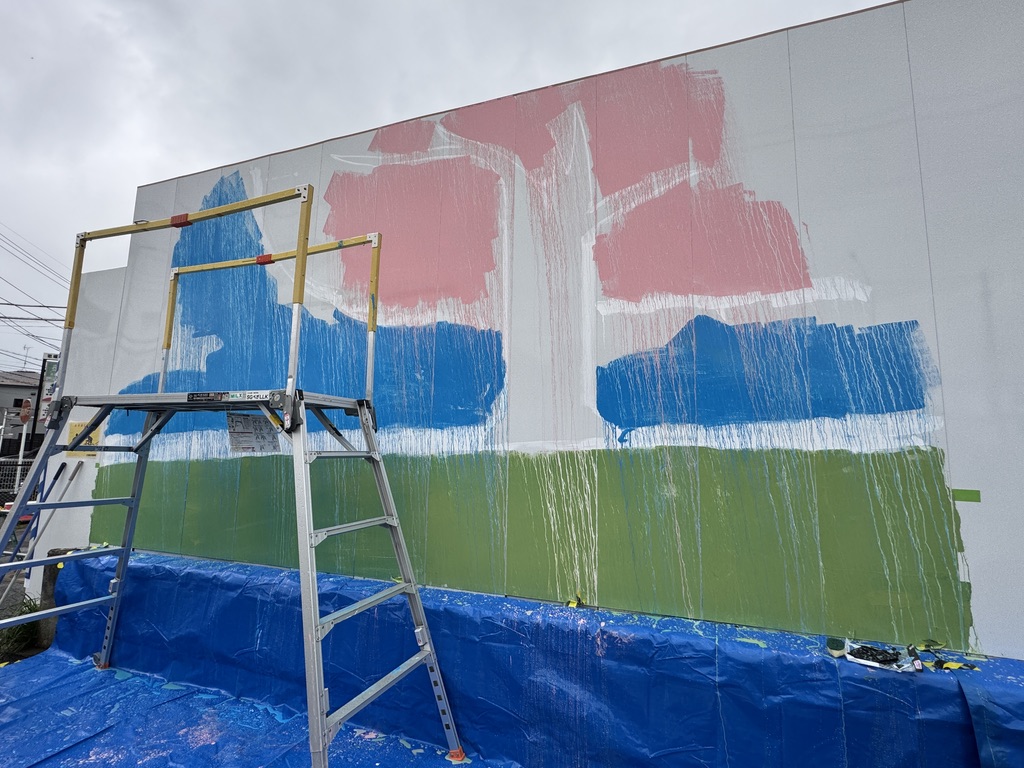 最終的に安全を考慮して苦渋の中止判断が下されましたが、雨に濡れた未完成の壁画は、完成された絵画とはまた違う力強い生命力を放っていました。