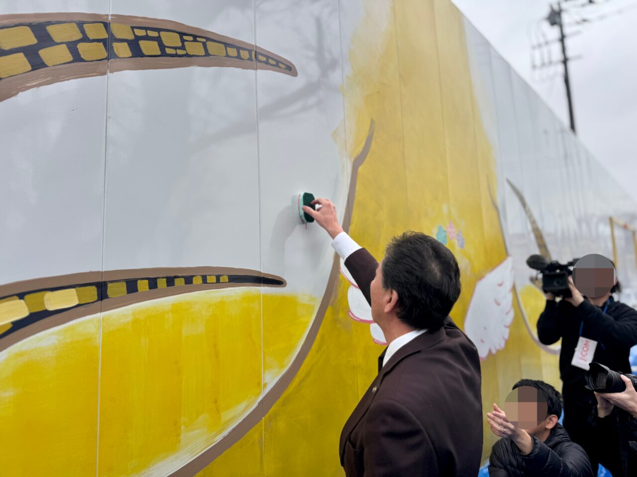 2026年年3月20日、八千代市役所の新庁舎建設現場が、一日限りの巨大なキャンバスに生まれ変わりました 。市内3つの中学校(大和田中、東高津中、萱田中)の美術部員たちが集まり、約54メートルもの真っ白な仮囲いに「桜」を描くアートイベントが開催されたのです。