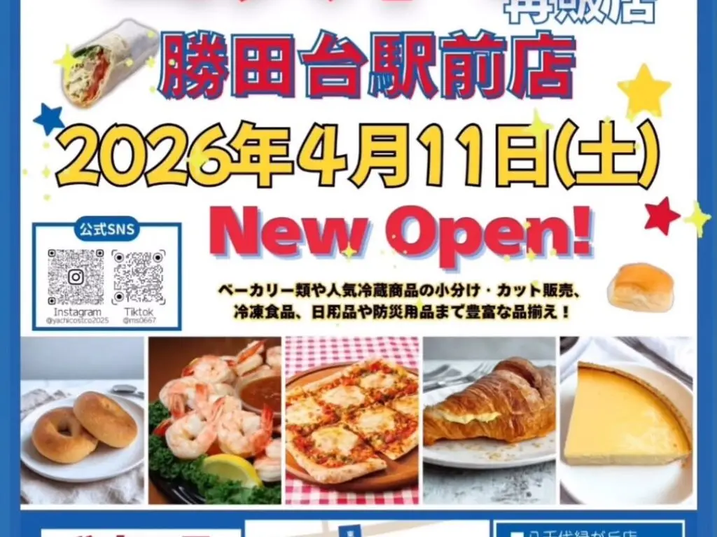 「コストコの商品は大好きだけど、大きなカートを押して広い店内を回るのはちょっと大変…」「年会費を払うほど頻繁には行けないけれど、あのパンやデリカが食べたい!」そんな声に応えてくれる、コストコ再販店「やちコス 勝田台駅前店」が、本日、2026年4月11日(土)オープンします!